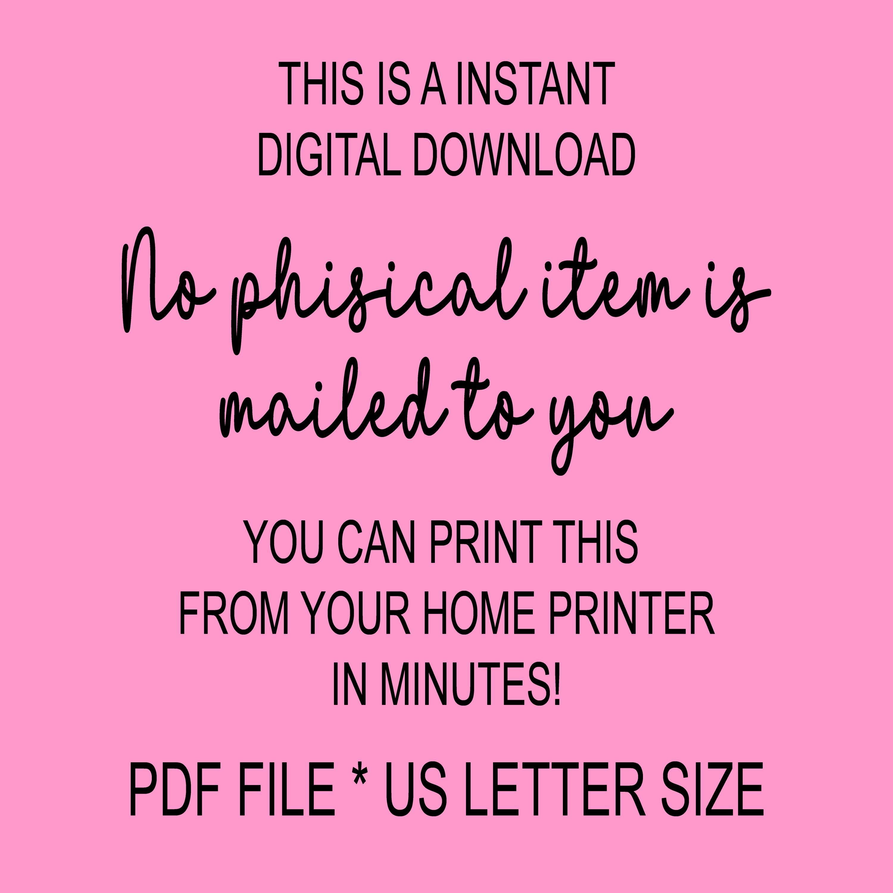 PDF Downloads: You have the printing rights and can print as many as you want from home, at a local print shop, or by uploading the file to an online printing service.