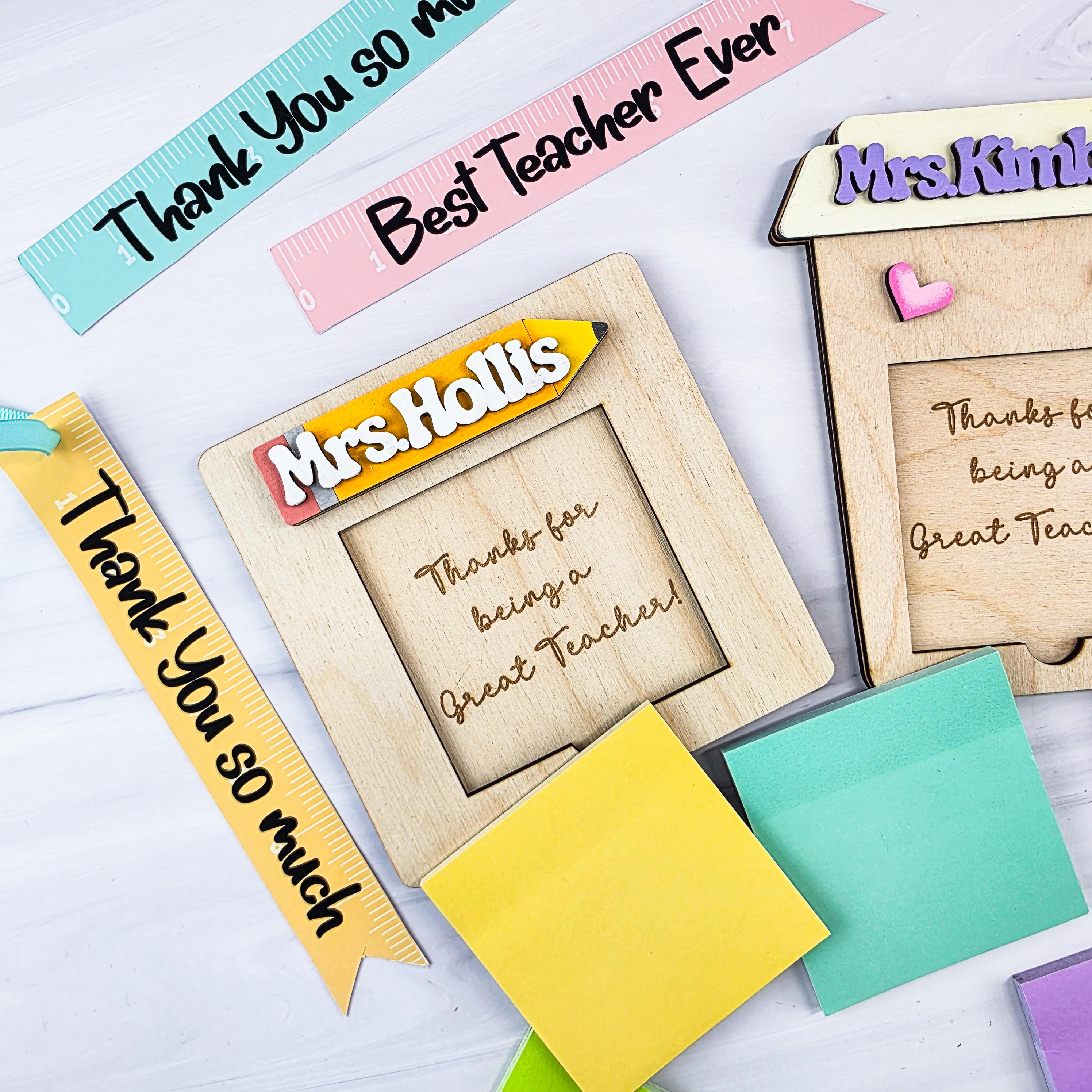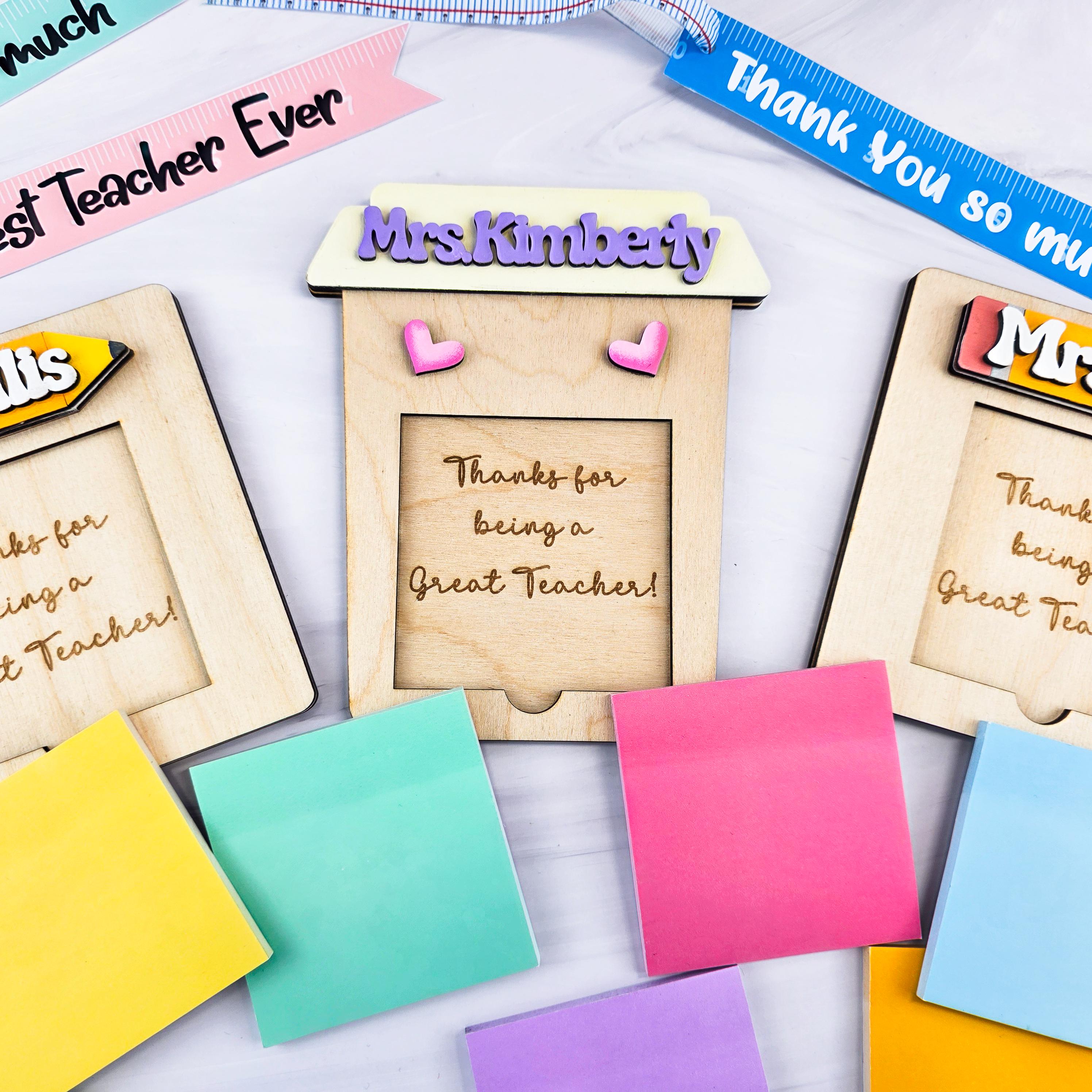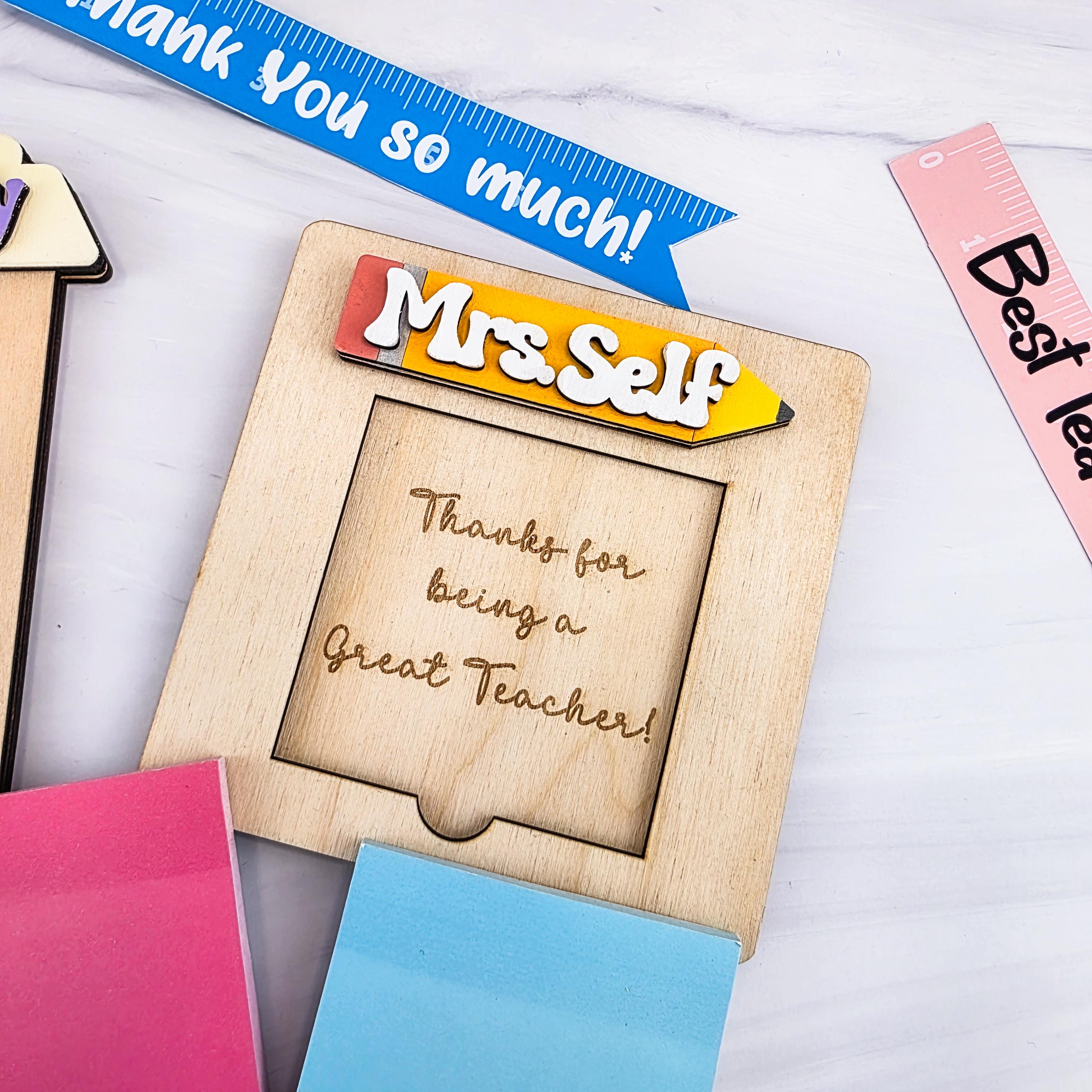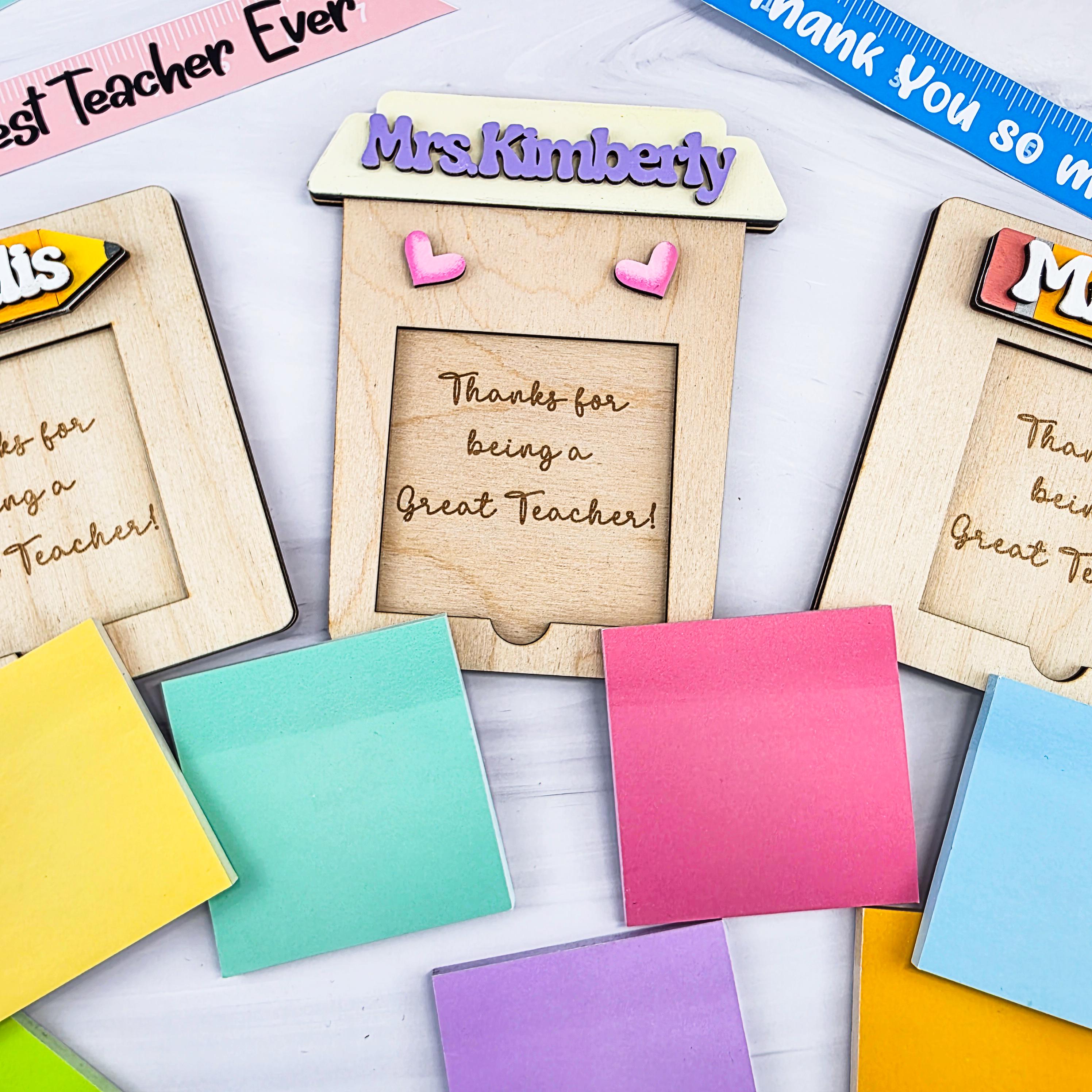 Sticky Notes Holder Personalized Teachers Appreciation Day, Baltic Birch Wood Teacher Gift Office Decor